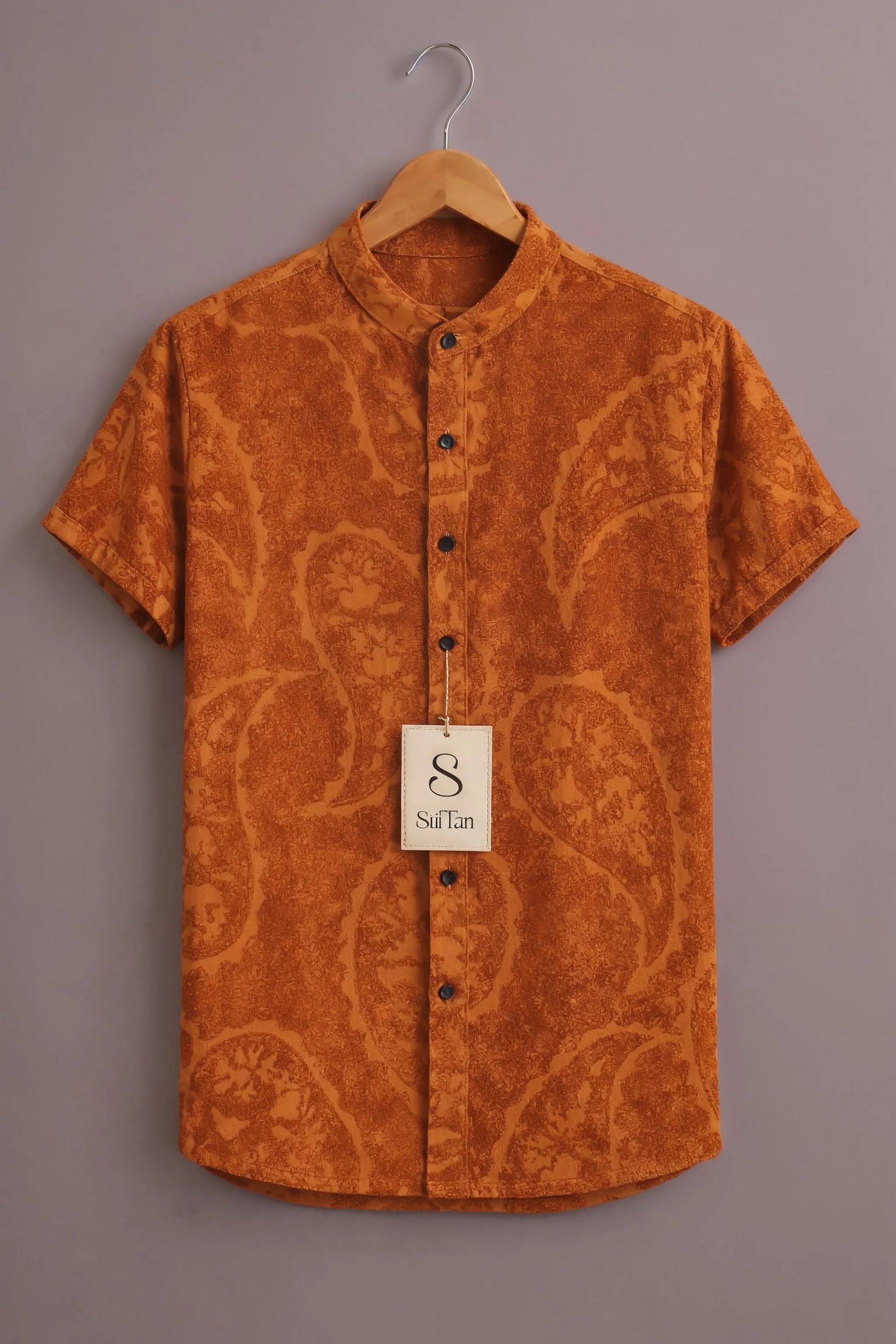 Bold tradition meets modern tailoring in the Rust Heritage Paisley Shirt. Crafted in a rich rust-orange tone, this piece features oversized tonal paisley motifs that create a refined yet striking visual texture.
